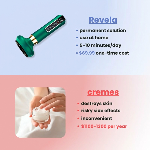 Revela works beneath the surface — where every cream you've tried couldn't reach. A few minutes, a few times a week, and the skin you've been hiding starts to become the skin you don't think twice about.